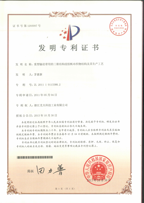 • 發明-重型輸送帶用的三維結構浸膠帆布織物結構及其生產工藝