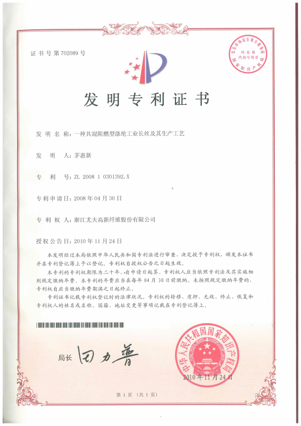 • 一種共混阻燃型滌綸工業長絲及其生產工藝