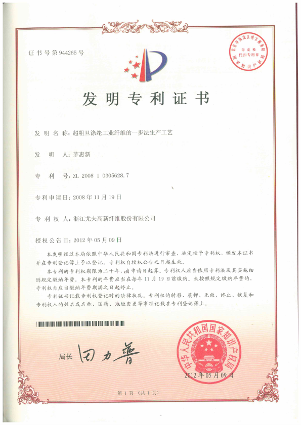 • 超粗旦滌綸工業纖維的一步法生產工藝