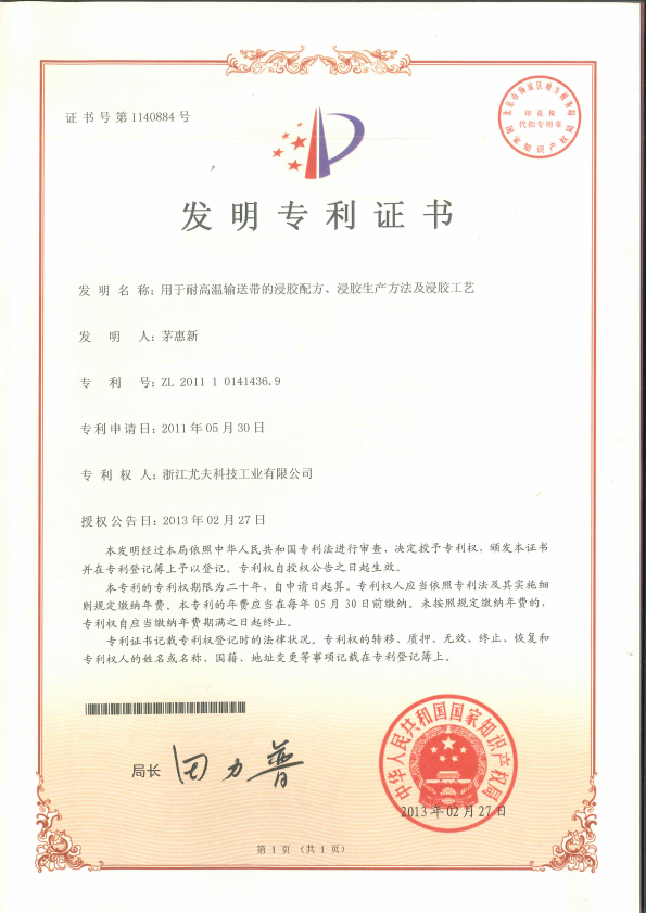 • 發明-用于耐高溫輸送帶的浸膠配方、浸膠生產方法及浸膠工藝
