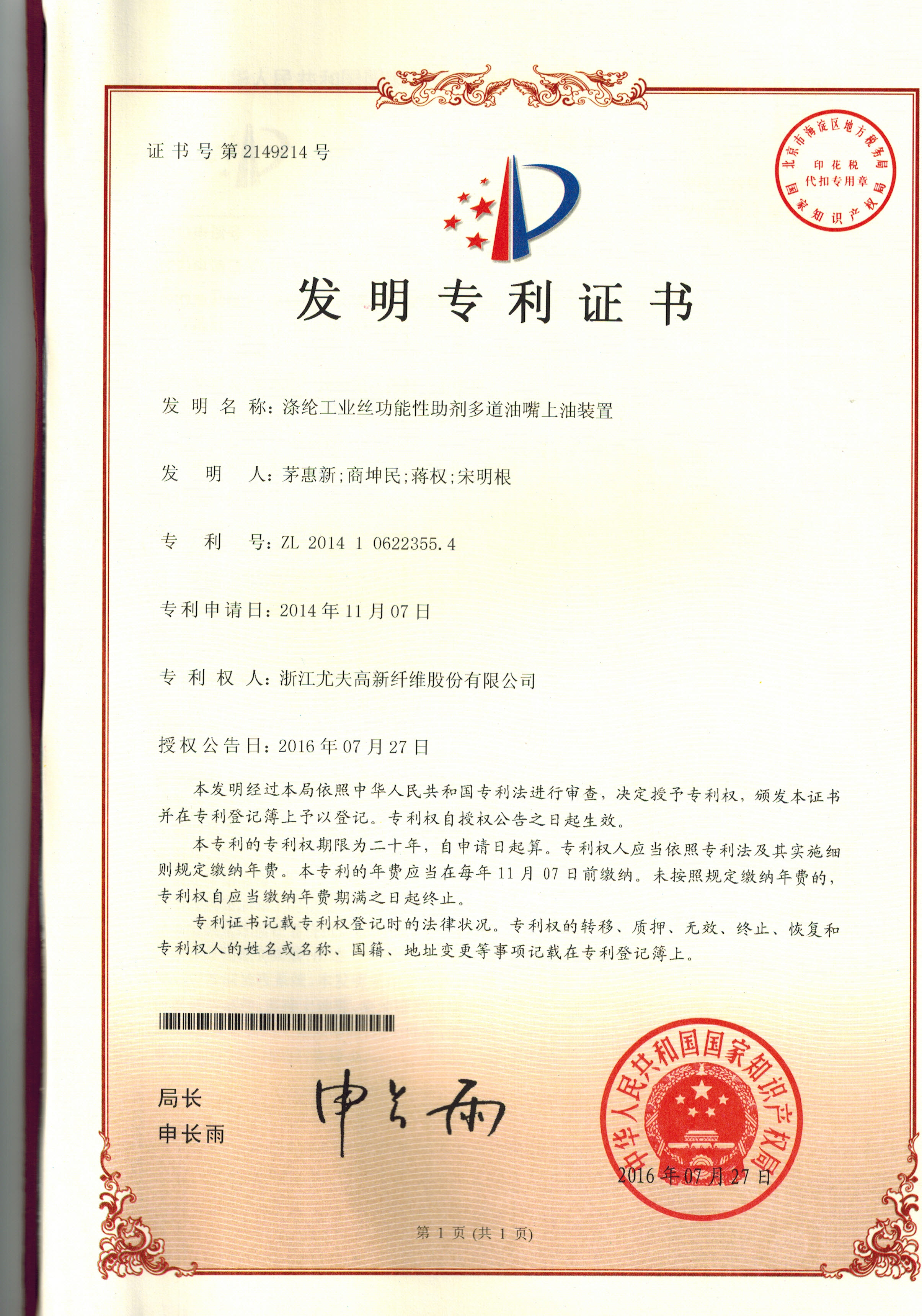 • 滌綸工業絲功能性助劑多道油嘴上油裝置