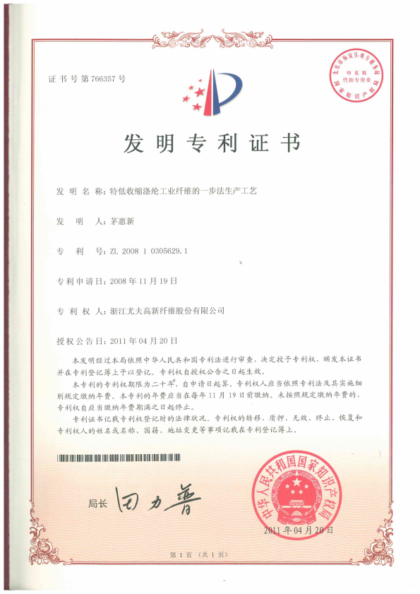 • 特低收縮滌綸工業纖維的一步法生產工藝