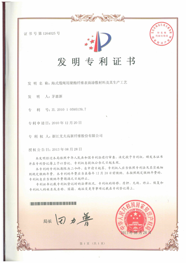 • 海式纜繩用聚酯纖維表面涂敷材料及其生產工藝