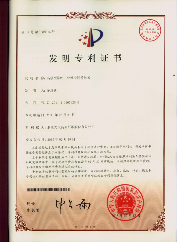 • 高強型滌綸工業絲專用噴絲板