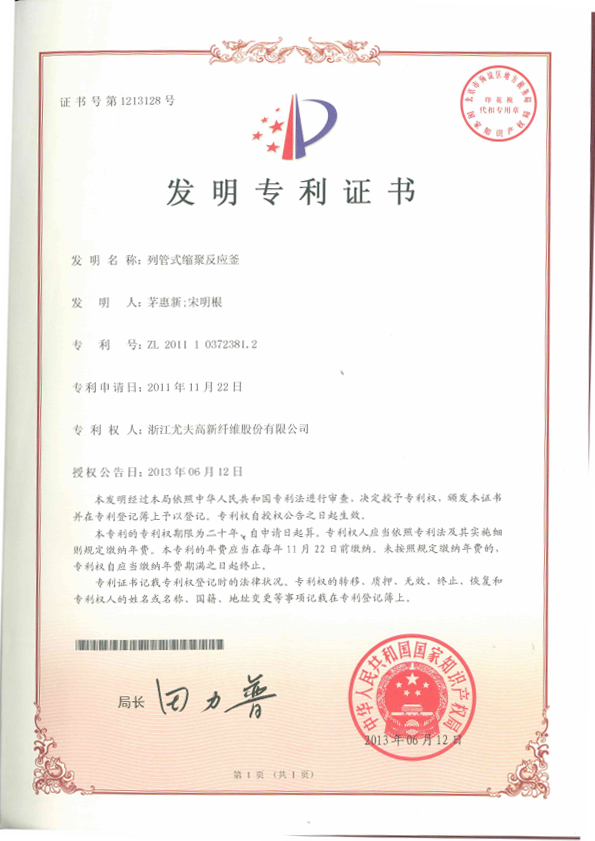 • 發明-列管式縮聚反應釜