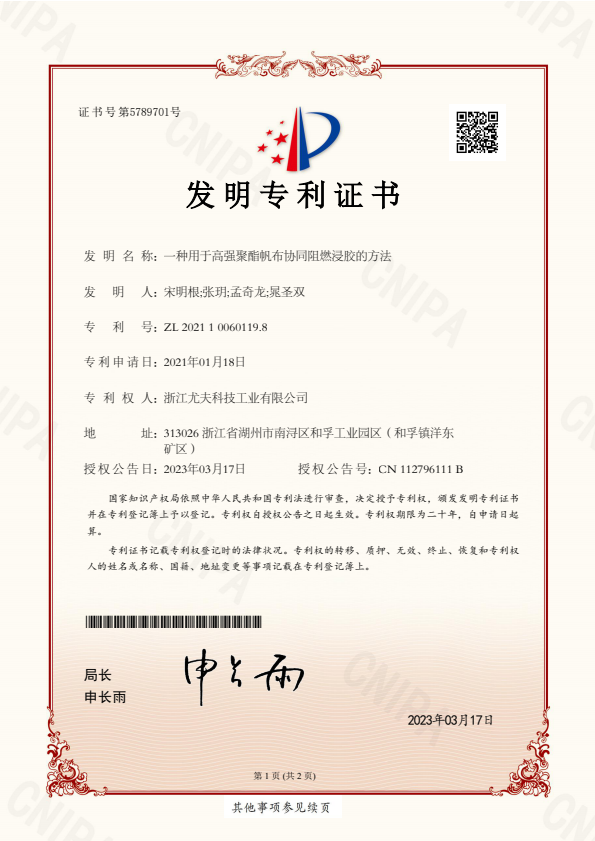 • 發(fā)明-一種用于高強聚酯帆布協(xié)同阻燃浸膠的方法